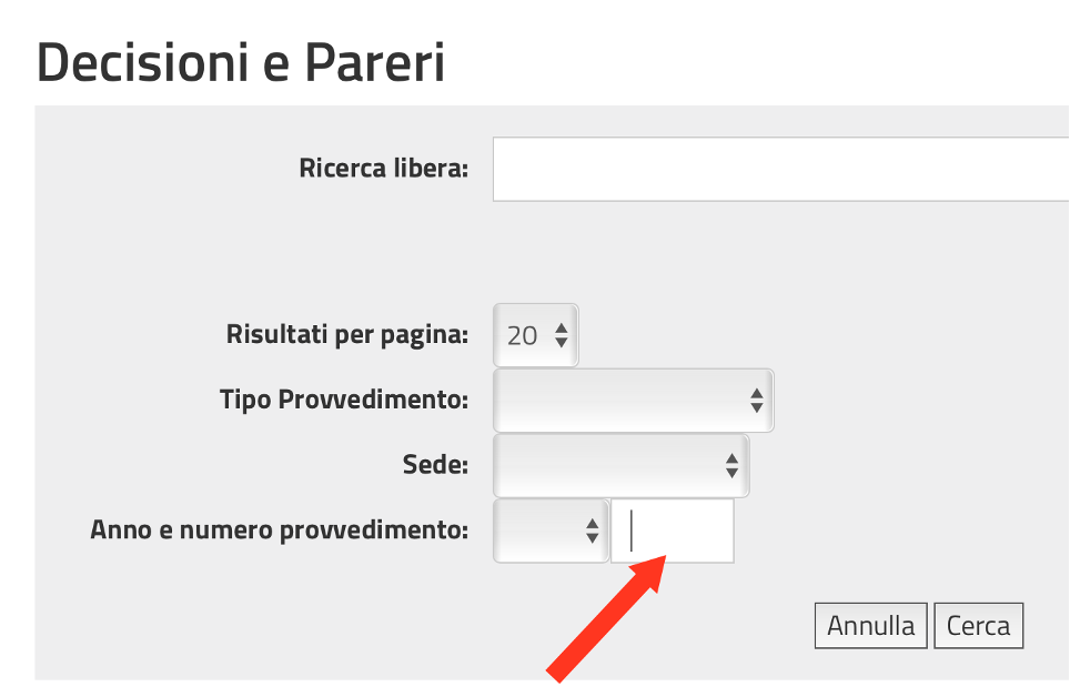 Il numero del provvedimento deve essere digitato integralmente nel campo a destra dell’anno